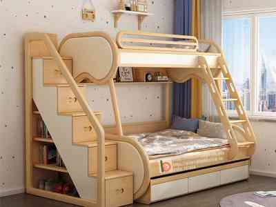 Dưới đây là mẫu giường tầng gỗ tự nhiên kiểu dáng đáng yêu cho bé được rất nhiều sự quan tâm và yêu thích. Tuy nhiên, vì có thiết kế cầu kỳ, sản xuất mất nhiều công sức và thời gian nên không phải đơn vị nội thất nào cũng nhận sản xuất.
